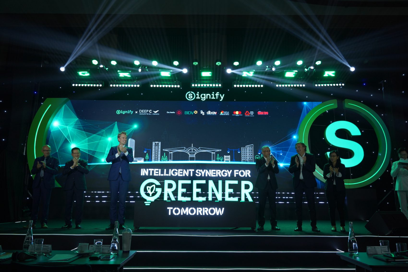 Điểm nhấn trong sự kiện là kí kết hợp tác giữa Signify và các đối tác thông qua việc ứng dụng & lan tỏa giải pháp chiếu sáng thông minh – nhằm nâng cao hiệu quả năng lượng, giảm phát thải. Hiện 4 khu công nghiệp của DEEP C Industrial Zones đã đang thay thế bóng đèn cũ bằng đèn LED thông minh của Signify, với khả năng tự động điều chỉnh độ sáng phù hợp vào ban đêm, giúp tối ưu hóa năng lượng sử dụng và gia tăng tuổi thọ đèn. Sự chuyển đổi xanh này ước tính sẽ mang lại hiệu quả tiết kiệm lên đến 45% năng lượng tiêu thụ (so với dòng đèn halogen cũ), đồng thời giảm hơn 60 tấn CO2 hàng năm, thời gian hoàn vốn đầu tư khoảng 4-5 năm.
