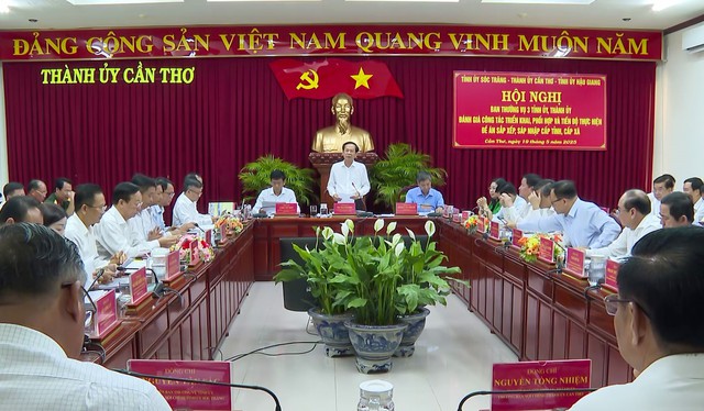 Kết luận hội nghị, đồng chí Đỗ Thanh Bình, Ủy viên Ban Chấp hành Trung ương Đảng, Bí thư Thành ủy Cần Thơ nêu rõ: Thời gian tới, Thường trực, Ban Thường vụ cấp ủy, Ban Chỉ đạo và các Tổ công tác 3 địa phương tiếp tục bám sát chủ trương, văn bản mới của Trung ương để triển khai việc sắp xếp, sáp nhập cấp tỉnh, cấp xã và thành lập Đảng bộ TP Cần Thơ.