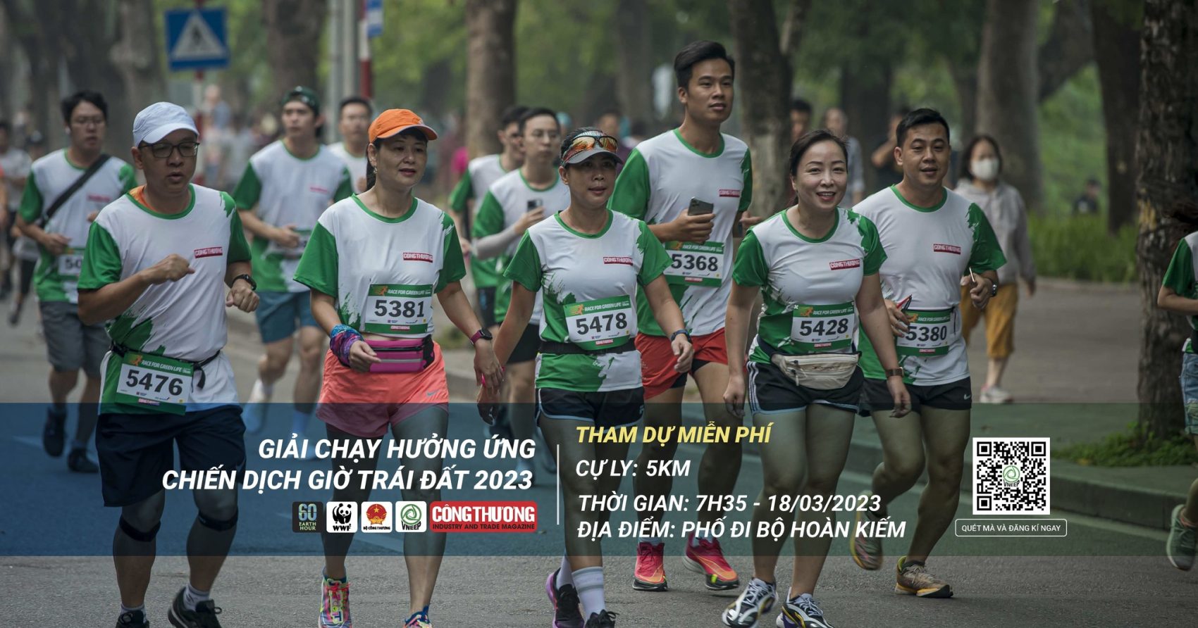 Giải chạy hưởng ứng chiến dịch Giờ Trái đất 2023 diễn ra vào sáng thứ Bảy, 18/03/2023 tại phố đi bộ hồ Hoàn Kiếm, Hà Nội với lộ trình 05 km (tương đương 03 vòng hồ Hoàn Kiếm).